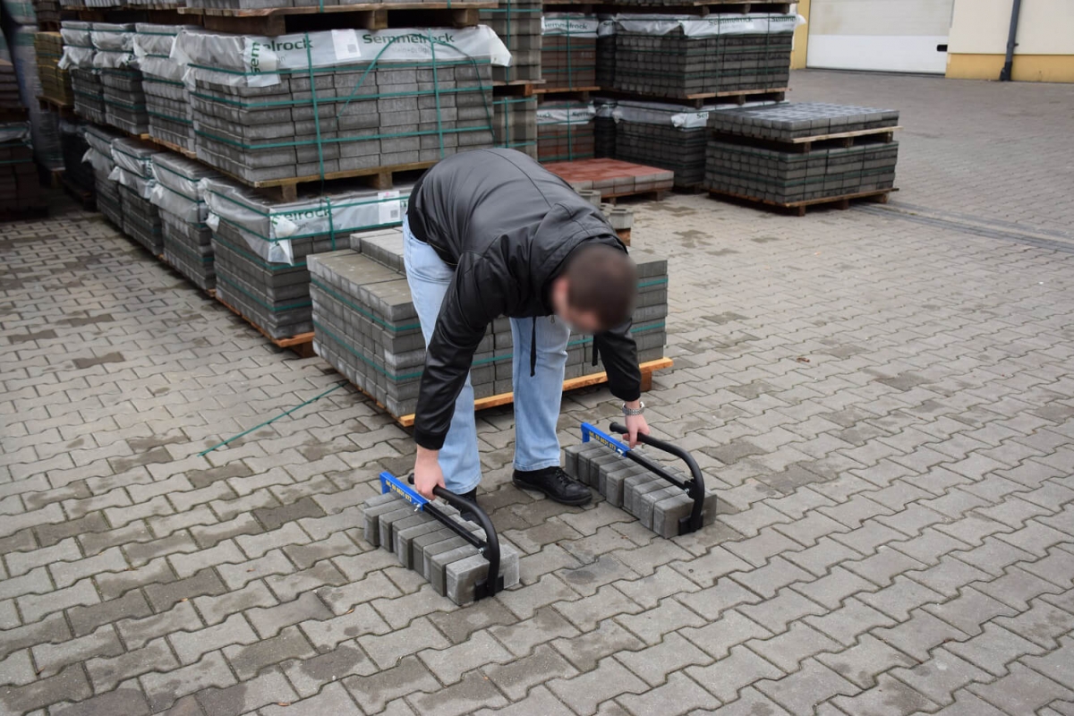 Chwytak ten służy do ergonomicznego przenoszenia cegieł, klinkieru lub kostek brukowych w szybki i bezpieczny sposób. Działa na zasadzie samozacisku. Do ich transportu najlepiej stosować dwa urządzenia (obydwie ręce są wówczas równomiernie obciążone), co w znaczny sposób zwiększa wydajność pracy i poprawia ergonomię.