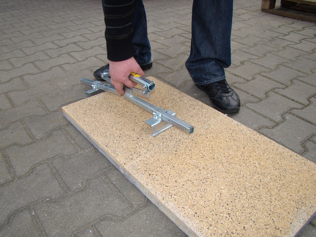 Służy do ręcznego przenoszenia i układania różnego rodzaju i wielkości płytek.  Uchwyt płytek odbywa się na zasadzie samozacisku. W zestawie znajduje się dodatkowa „łapka”  umożliwiająca wyciągnięcie płytek ze środka ułożonej powierzchni.