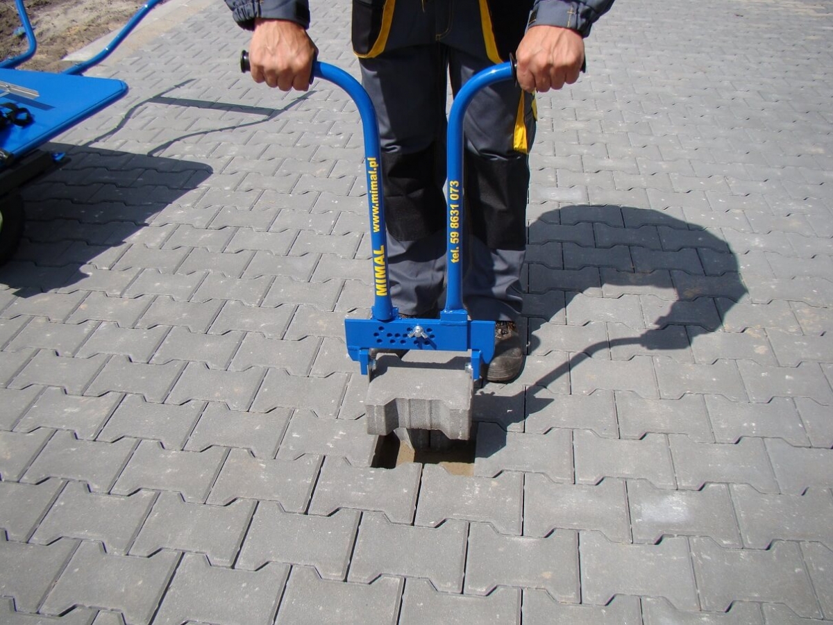 Służy do wyciągania kostki brukowej z ułożonej nawierzchni. Imak brukarski wyposażony jest w wymienne hartowane końcówki (noże).